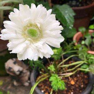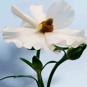 白のラナンキュラス、開花しました~✨綺麗🎵💙