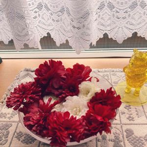 おはようございます😃 朝から冷たい雨☔️が降ってます 昨日の強風で花壇の ラナンキュラスさんが皆んな倒れてしまいました😨 かわいそうだったんでお花を摘んで ガラスの器に浮かべて飾ってみましたよ😁 テーブルがちょっとゴージャス✨✨な感じ💕💕