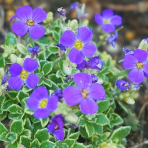 花数が増えてきたオーブリエチア バリエガータ ラピスとヒナソウ💙