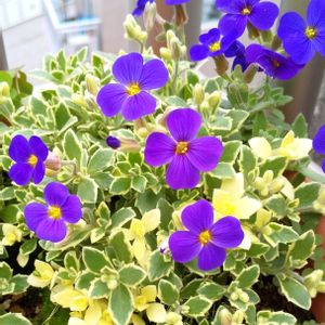 今年は苗から育てたアスペルラ オリエンタリスと昨年お迎えし無事に夏越し・冬越ししたオーブリエチア バリエガータ ラピス💙 斑入りは弱いものが多いので1年草扱いかなぁと思っていたので得した気分♪