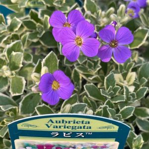 💙💜オーブリエチア バリエガータラピス💜💙 オーブリエチアの三種を、4/2日にupしましたが、こちらは、斑入りのオーブリエチア バリエガータラピスです。 他のよりは遅めの開花です。 『原産:南東ヨーロッパ/西アジア 科:アブラナ(Brassicaceae) 属:ムラサキナズナ/オーブリエチア(Aubrieta) 種:ムラサキナズナ/デルトイデア(deltoidea) 品種:バリエガータ(variegata) 開花時期:4月~5月 花の色:紫色● 葉色:緑色●黄色●白色〇 分類:常緑多年草 草姿:這性 草丈:約10~20cm』