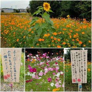 子供の⚽の試合に行っている娘からLINEが送られてきました。 コスモスの中にひまわり🌻が1本立っていて、その写真を撮ろうと近づいたら、こんな素敵な看板があったそうです。 こんな心の温かい人がいるんですね。 どれだけの人がこの看板を見て癒されたでしょう…… 皆さんにも見ていただきたいので投稿します❣️