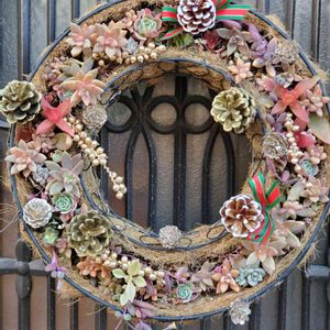GSのアイコンにしている多肉リース X'masリースにしてみました🎄✨ 先日石の日に使った松ぼっくりをワイヤーでクルクルしただけですが…… 和風の玄関なのですが、インターホンの隣に期間限定で飾りました🎅🎄