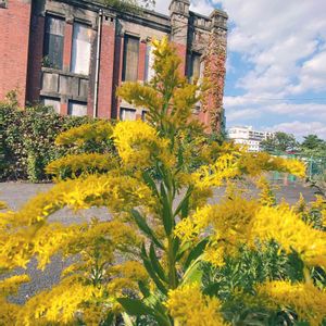 砲兵工廠とセイタカアワダチソウ (背高粟立草) 大阪砲兵工廠(ほうへいこうしょう)は 明治新政府発足時に設立した兵器工場で 主に大砲や弾丸を製造していた セイタカアワダチソウ アキノキリンソウ属(秋の麒麟草属) 非常に侵襲的な雑草だがしばしば切花として使用される 根茎を介して繁殖し非常に丈夫で寒い環境でも生き残ることができる 花言葉 お金、予知 大阪城公園内に古い入ることができない建物あり調べてみました