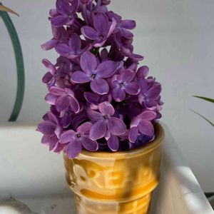 🍦ラベンダーソフトクリーム🍦 ライラックの切り花を 百均のミニ陶器に生けたら美味しそうなソフトになりました😍
