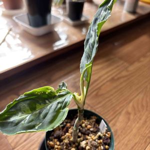おはようございます☀ 今日から11月! 今月もよろしくお願いいたします🥰 昨日完全に一目惚れで連れ帰ってしまった、アロカシア•アズラニーさんです🥺 私、偏光ビニールとかエナメルとかピカピカテカテカした素材が大好きなのですが、この子の葉っぱを一目見た時からトキメキが止まらず…!! 昨日のシルバードラゴンさんと共に、アロカシアに初挑戦することにしました🥺 それにしてもアロカシア、手触りや見た目が良いものが多すぎて完全に沼に足突っ込みました🤣 大きくなるのわかってるのに…!!! 欲しい子が無限に出てくる🥺 この子達が上手く育てられそうなら、徐々に増やしていこうと思います🥺