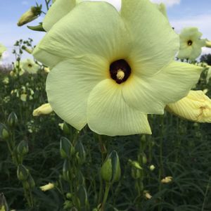 ☔の日にしぼんでいて、気になっていたお花が今日開いていました😊 爽やかなクリーム色の大きなお花がにっこり😊 空が青かったら、もっときれいだったのに…😅