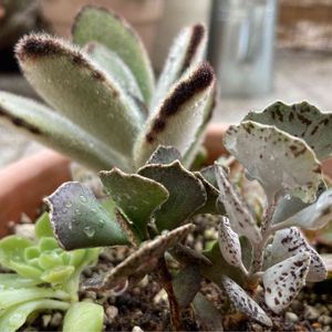 不死鳥と一緒にお迎えした扇雀さん🕊 カランコエは月兎耳やテディベアのようなもふもふ系も可愛いけれど、ちょっと風変わりでユニークな模様や形の葉を持つ子も居て、とても奥深い😸 ちなみに扇雀は黒扇雀(←この子)と白扇雀が居るようで、白扇雀も早速ネットで見つけて即ポチってしまった😙