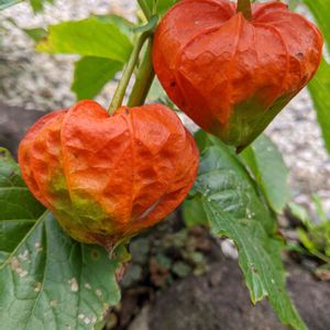 ホオズキ(鬼灯) お墓に2本。仏様に1本、花屋さんのみたいに見事ではないけれど、今年も盆花は、ホオズキだけは庭の花畑から調達できました<( ̄︶ ̄)>