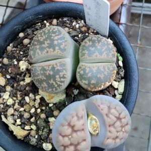 リトープス・オプティカ ルブラさんの開花です😻💜💗🤍💛 お花さんが それはそれは艶々で綺麗なのですが いまいち伝わらず…😿ゴメン