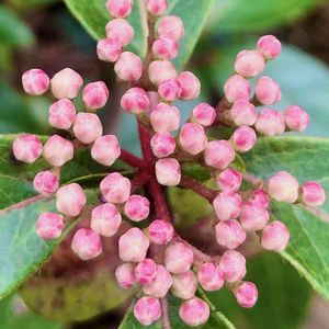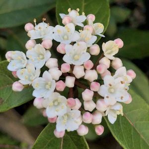 今日のお散歩コースで見つけました。 ビバーナム・ティヌス。和名ではトキワガマズミと呼ばれているようです。 まだほとんどが蕾でしたが、所々に咲き始めた小さな薄ピンクと白のお花が可愛らしかったです💗