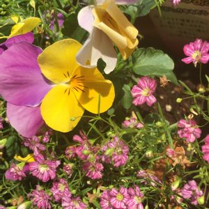 ビオラ(スミレ科) カスミ草(ナデシコ科) カスミ草は花糸撫子(ハナイトナデシコ)とも言われでますます。