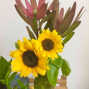 今日の花活。 店員さんと盛り上がってしまい、 気付いたらリューカデンドロとピンクッション追加してた....♡(◕‿◕✿) ピンクッションは、よく見るピンクじゃなくて黄色?オレンジ?にしました! ハンギングかシリカか悩むな〜(´・ω・ `)