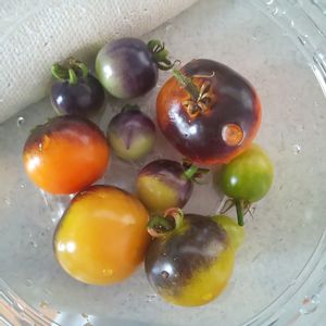緑、黄色、黒のミニトマトを育てたのですが… 植えてすぐ梅雨(というか、連日の土砂降り)で手入れせず(^-^; 勝手に出来てた。。 がー! 黒の食べ時がわからず、今朝やっと収穫してみた。 (黄色はひとつもできなかった…) ひとつだけ全部緑の緑ミニトマトは一般的なミニトマトサイズなので、おそらく食べ頃。 問題は他の黒! 真っ黒になるものだと思って待ち続けていたら、下半分赤のやつがジュクジュクに。。 どれが正解の黒ミニトマト??