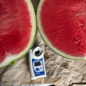 此方のスイカの断面図を見てください。 観てお分かりの方もいらっしると思いますが中心が少し空洞がありますが、その部分はサクサクのとても甘いまるで蜜蜂の蜜蝋の状態です。これが此方の寒暖差から出来る特徴です。一度味わうと他のスイカ🍉が食べれなくなりスイカ嫌いの人も直ぐに好きになるサッパリとした甘さですよ。 🌱🌱🌸🌼