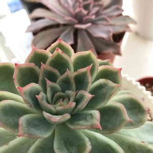 センセプルプ E.sensemejio x E.purpusorum センセメジオ×パープソルムの根岸さんが作ったエケベリア。 原種のセンセメジオが図鑑に載ってない…💦 センセメジオは雪影の親でもあるそうで、 検索すると雪影ばっかでで来る。 んー謎べリアだなぁ。