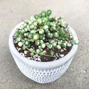 【班入 グリーンネックレス】 ちゃわんみたいな鉢に植えたら 見た目がごはんみたいになった🍚 かわええなあ。 育て方 https://lovegreen.net/library/succulent-plants/senecio/p88901/