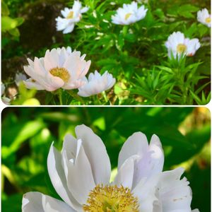今日の庭 1️⃣ シャクヤク紅花 やっと少しずつ開花が 始まりました🎶 豪華で気品ある花姿が もうすぐ見れそう🤗 白花は まだ蕾 2️⃣カモミールとツルバキア 先日の風雨にも耐え 沢山の花姿は まだシャキッと 倒れそうな花茎は ツルバキアと支え合ってました😅 3️⃣シラン 今年は 沢山の花 植え替えしたので 庭の彩り 鮮やか🎶 4️⃣弁慶小菊 ペラペラヨメナ 白、淡いピンク、濃いめのピンク と 彩り豊かに 風に ユラユラ〜 可愛い😍 下側には コバノズイナの 穂状の 可愛い蕾姿 5️⃣ウスベニカノコソウ 鹿子草、吉草根 オミナエシ科 小さな紅色が集まった 花姿 生薬として利用