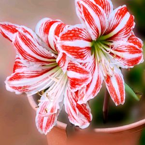 🏷️今日のお花 🏷️2のつく日は斑入りの日 アマリリス アマリリスの楽曲が聞こえて 来ます 我が家のお花です