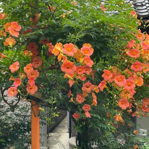 こんにちは♬ 🌼ノウゼンカズラ🌼 暑いこの時期にも花をふんだんに咲かせています。 こんなに綺麗な花を長期間咲かせてくれても評価はボロボロのようです🤣💦 生命力旺盛‼️
