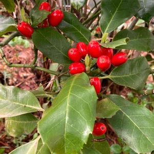 ひいらぎ 冬に緑だった実が春になり赤くなっていました あれ?クリスマス⁉️って思ってしまう色合いです