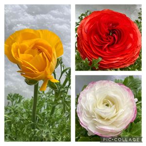 またまたラナンキュラス 最近、水切れで赤と黄色がぐったりしたので、水をあげたらすぐ元気になり一安心😌 きれいに咲いてます 黄色もだんだん開いてきました✨