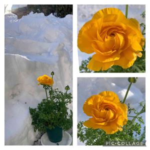 ラナンキュラス3shot 黄色開いてきました💛 我が家の庭は1.5m程の雪 春遠いです(⸝⸝o̴̶̷᷄ o̴̶̷̥᷅⸝⸝)