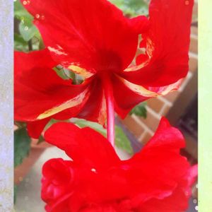 今日のお花💐「ハイビスカス🌺」 家は「ハイビスカスフラミンゴ🌺🦩」が咲いて、真夏になってきたぞ~と言っています☀️ 1日で萎れてしまうので、なかなか咲き揃わないけど、今日は小さめのお花と2輪咲いてました🎵💕