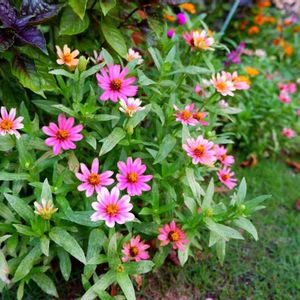 種から育てたジニアが咲き始めました。小さくて可愛い色です