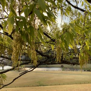 今日の散歩🚶 大島小松川公園⛲️ ソメイヨシノもかなり咲いています🌸 高い場所から見るとこんな感じです🌸 クヌギの花も咲いていました👀