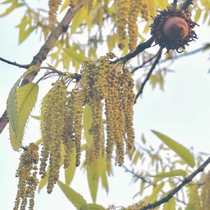 落ちずに残るクヌギ玉 そして、新葉と花房