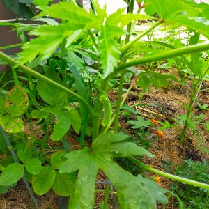 今年初のオクラ 今年は4種類くらい育ててるから楽しみ