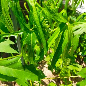 真夏の日差し うちのオクラは葉が完全に下にだらんと萎れる。暑いから?と思うも他の人の畑は元気。水は上げてるつもりだけど、、根が貼ってない?なぜ?
