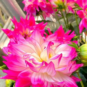 集金先の花屋さん🤳✨ もうダリア咲いてる🤩 鮮やかなピンクに| ゚д゚)ハッ! として☆⌒d(✿ ^_・)bグッ!!🤣
