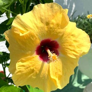 黄色のハイビスカスも負けずに咲いています🌼夏の終わりに夏を惜しむかのように蕾が成長し咲き出しました💕 毎日必ず豪雨なので屋内に入れたり出したり大変です⚡️