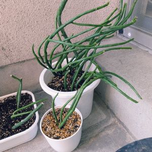手が回らず数年間ほぼ放置 強い… 伸びすぎたので、ようやくチョキチョキして株分け なびいてるみたい🍃 太陽と逆向きに置いて観察 向きが変わるかな