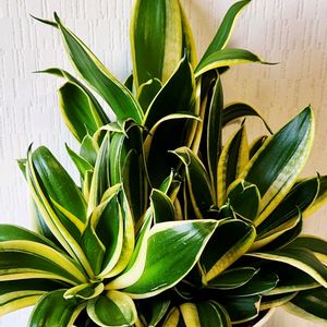 サンセベリア ①植え替えを先延ばししていた現在の姿 ②決心して鉢を開けてみると5株に増え ③ようやく植え替え終了でスッキリ ④4年前ダイソーからお迎えしたときの姿