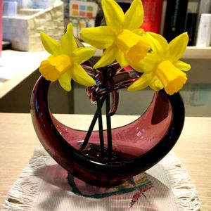 ハートの花瓶に3本の水仙 とってもかわいいね💕😍