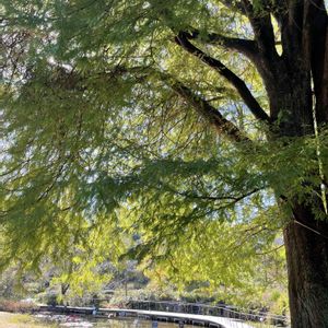 左にスライドし いろんなラクウショウを ご堪能下さい☺️ ラクウショウ✨ ヒノキ科(スギ科) 北アメリカ 北アメリカ東南部からメキシコ湾岸の湿地を 原産とするスギ科ヌマスギ属の落葉高木 日本に来たのは明治時代で よく似たメタセコイアと共に公園などに植栽される ラクウショウという名前は 秋になると羽状の葉が枝ごと落下することにちなむ 漢字では落羽松だが、マツの仲間ではなくスギの仲間 とのこと 3枚目 初めてみたラクウショウ✨の 美しい実 ピンポン玉のように大きい✨ 4枚目 樹肌 5枚目 ラクウショウの気根 ラクウショウには根が地面に突き出る 「気根」(あるいは「膝根」「呼吸根」) と呼ばれるものが生じる これは酸素不足を補うもので 水辺など湿気の多い場所の個体に見られる また、幹の元の方には不規則に張り出す 「板根」というものができる とのこと 🏷️木曜日は木 🏷️樹木見上げ隊 参加いたします☺️ 2023.11.4撮影