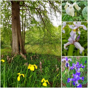 暑いので🥵投稿しそびれていました水辺の風景を~ラクウショウの気根、要注意外来植物のキショウブ💛とアヤメ科のお花達💜😊🎶 🏷️水辺の水曜日に参加させて頂きます🥰