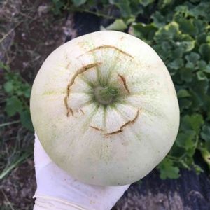 メロンにヒビが入ったので収穫してみました🍈 糖度は12.2度で果肉はまだちょっと固めでした😵 次回はもうちょっと待ってみます😬