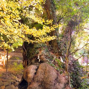 第二の御神木であるクスノキです✨ 根っこの部分かな?げんこつみたいに盛り上がっていて迫力がありました✊🏻 イチョウも薄い黄色に紅葉していました💛