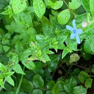 渋めの紫の葉っぱに 小さなかわいい花 咲いてた *