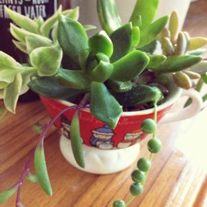 ジョウロ鉢♡ お気に入りの小さなジョウロ鉢の子達も少し色付きはじめて冬支度かな ꒰⑅•ᴗ•⑅꒱ 日に日に気温下がるから眺める時間が減っていく~