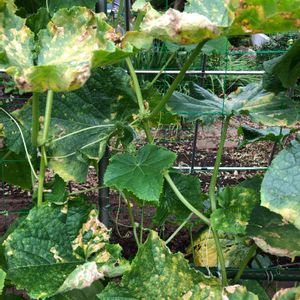 キュウリの病変葉 自根の翡翠から発生し他の株にも、、。 今年は糸状菌が多い!