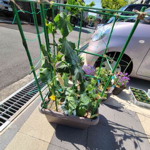 今日はキュウリの苗を植え付けました! 成長を見守りたいと思います。😀