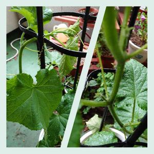 ベランダのキュウリに脇芽?花芽がついてきました。 芽かきというのをするらしいですね! 咲かせちゃ駄目なのかい? そうかい そうかい(。•́︿•̀。)シュン タイミング逃さないようにしなきゃな