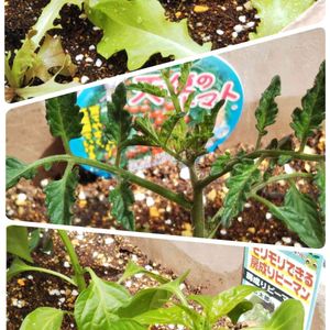 @teruterubouzuさんの野菜作り投稿に刺激を受け、長年眠ってたプランターを引っ張り出して トマト、ピーマン、フリルレタスに挑戦‼️見事にできたらUPしますが、なければ失敗したんだな…💦とお察しください😅