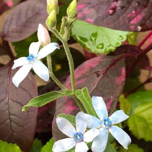 おはようございます😊 今日も雨⋆̩☂︎*̣̩ 軒下でひっそり咲いている ブルースター☆ 1回 切り戻したのに伸びて伸びて どう整えたらいいのか🤔 相変わらず小さな鉢で🪴