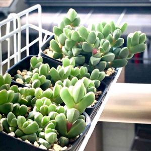 1年半前に葉挿しした虹の玉。 ぎゅ〜ぎゅ〜過ぎたので今年の春にイチゴの空きパック3つにバラしたら、いい感じで増殖してくれました🥰 可愛い鉢じゃないので引きでは撮れません😅 真っ赤にな〜れ🍁